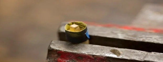 Step 4. Pour the liquid solder to fill inside the paper, around the square center. Allow the melted solder to cool and harden. After the solder is cooled, remove the paper. Then, using a peg sharpener, shave the rough surface around the solder making the soldered bushing smooth and able to fit the hole.